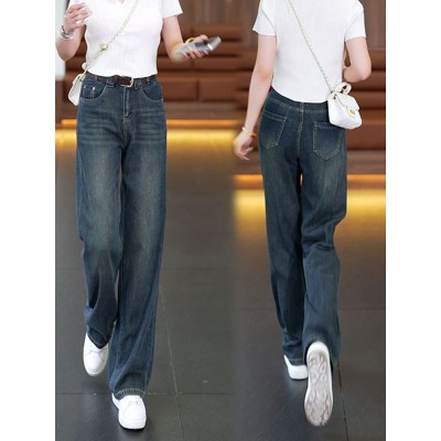 Wide-leg jeans for women High waist slim wide-leg pants Retro elastic versatile floor-length straight pants